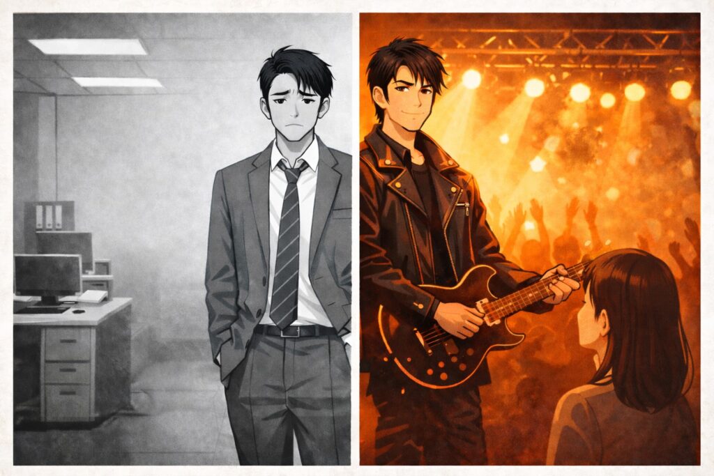 職場では目立たない人が、夜に別人みたいにかっこよかった。